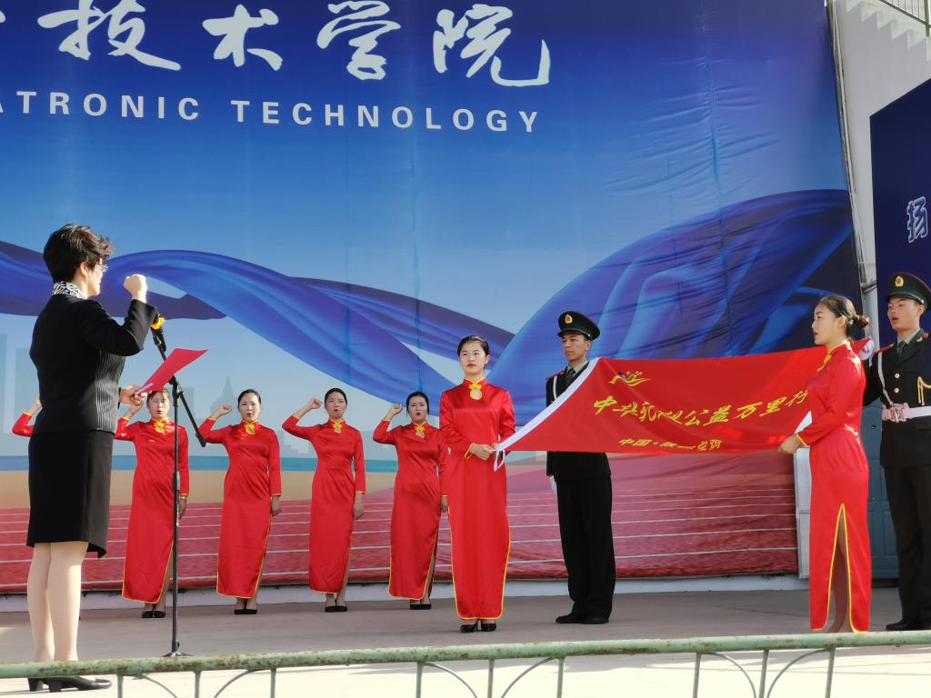 高铁乘务员工代表进行了礼仪操展示,同学们着装规范、姿态优雅,一动一静蕴涵着知性的气质和文明的素养。
