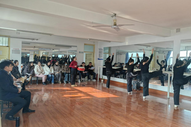 首先,严立琼老师以“中国古典舞舞姿组合训练”为题,为大家呈现了一堂生动、实用的公开课。严主任结合高铁乘务实训的实际情况,深入浅出地讲解了舞姿组合中单山膀、双山膀、小射燕等要领及呼吸的方法。她通过丰富的案例分析和现场模拟,使课程内容既具有理论深度,又贴近实训需求,赢得了在场师生的阵阵掌声。