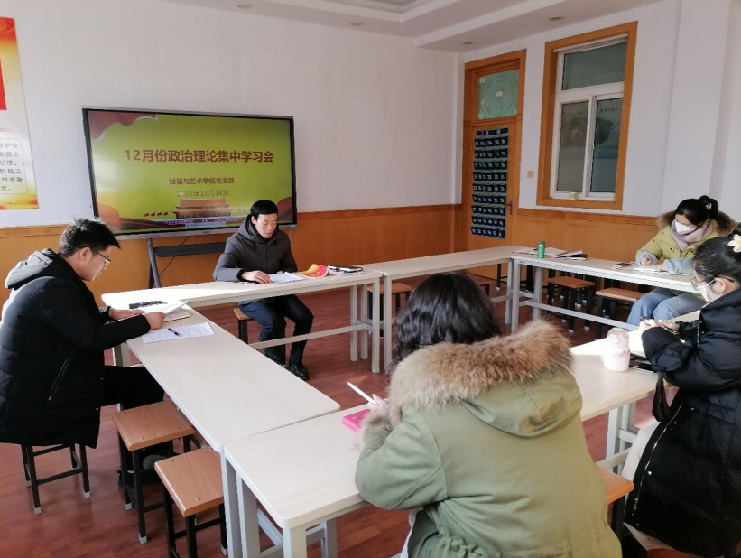 2022年12月14日下午,经管与艺术公司党支部在经管与建筑楼二楼会议室组织召开12月份集中政治理论学习会。支部全体党员参加会议,会议由支部书记孟发军主持。