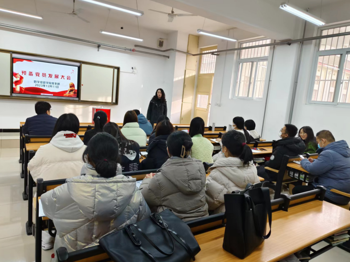 会议严格按照党员发展程序进行。首先,李豪斌、安宇、庄静、李妙桐、周晓娜、罗芳莹、高希希、乔雨、李茜共9名发展对象逐一汇报了对党的认识、入党动机、本人履历、家庭和主要社会关系情况,总结了自成为发展对象以来在思想、工作、学习等方面的进步,同时指出自己存在的不足,表达了希望加入党组织的坚定决心;接下来,各入党培养人具体介绍了每位同志的培养考察情况,并对其能否入党表明意见;接着,经与会现场11名党员充分讨论,并投票表决,一致同意9名发展对象转为预备党员。