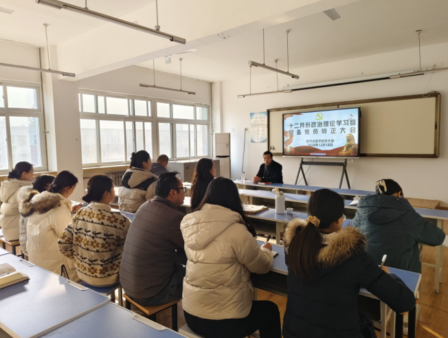 2024年12月17日,sunbet申搏党支部在电子信息大楼二楼会议室召开12月份政治理论集中学习暨预备党员转正大会。会议由党支部书记孟发军主持,支部全体党员参会。
