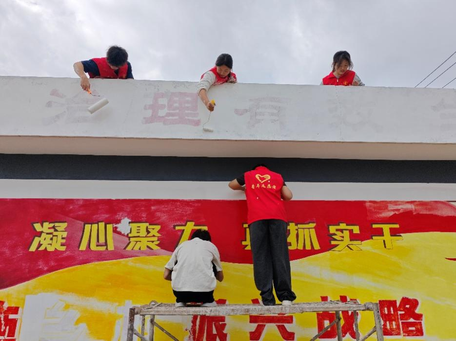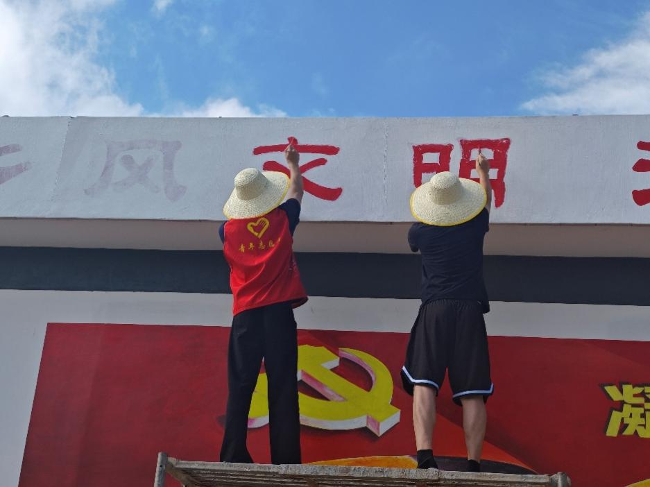 实践期间,队员们分工协作,承担起村内墙面绘制工作。从主题构思到图案设计,从调配颜料到细致描绘,创作期间,同学们不畏烈日暴晒与偶降阵雨,专注勾勒每一处细节,将乡村振兴、民俗文化等元素融入画作,让原本单调的墙面变成一道道靓丽风景线。同时,在实践期间,队员们自力更生、洗菜做饭,在烟火气中锤炼本领、增进友谊。