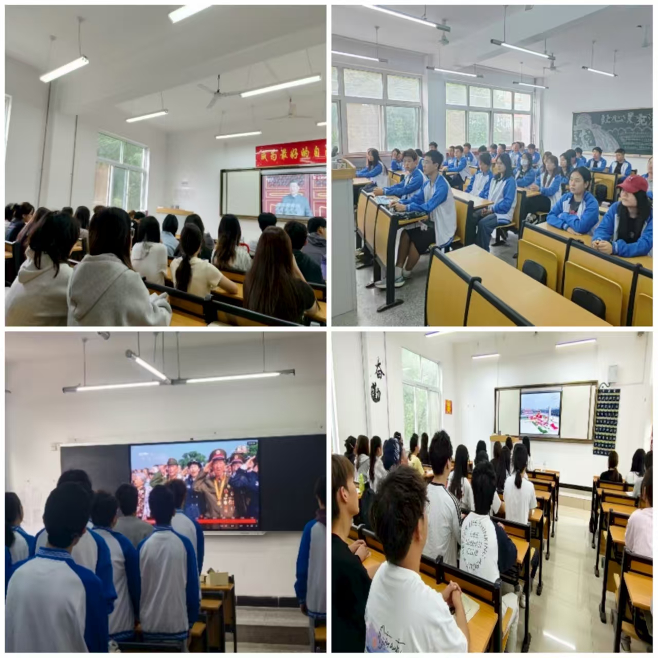 观看结束后紧接着各班又组织员工观看了“九三阅兵”。在观看过程中,大家满怀期待,共同守候阅兵仪式的直播开启。当信号切入屏幕,激昂的旋律响起,一列列整齐的方阵和先进的装备依次展现。师生目光专注地凝视画面,仿佛亲临现场,深切感受到国家的强盛与军人的英姿。此次阅兵展现了我国日益强大的国防实力与军队现代化建设的重大成就,令在场全体师生倍感振奋,大家共同见证祖国的繁荣富强,爱国情怀与民族自豪感油然而生。