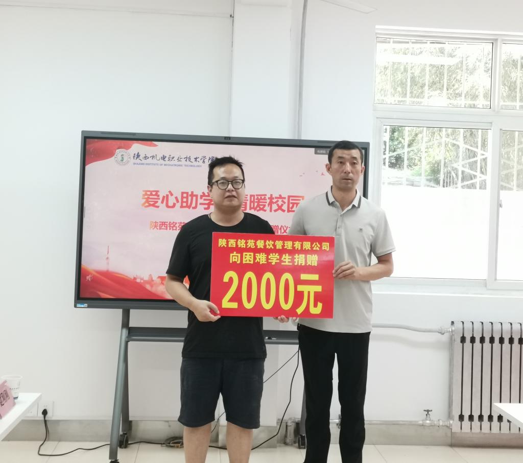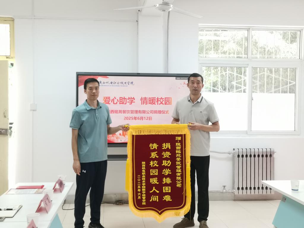 骄阳似火,情暖校园。 2025年6月12日上午,一场温暖人心的爱心助学捐赠仪式在宝福路校区员工“一站式”社区举行。陕西铭苑餐饮管理有限公司慷慨解囊,向sunbet申搏家庭经济困难员工捐赠爱心资金,助力学子成长成才。党委学工部部长、员工处处长王建斌、sunbet申搏党支部书记孟发军、陕西铭苑餐饮管理有限公司总经理苏小勇及企业代表和sunbet申搏师生代表共同出席捐赠仪式。捐赠仪式由员工处资助管理中心主任白兰主持。