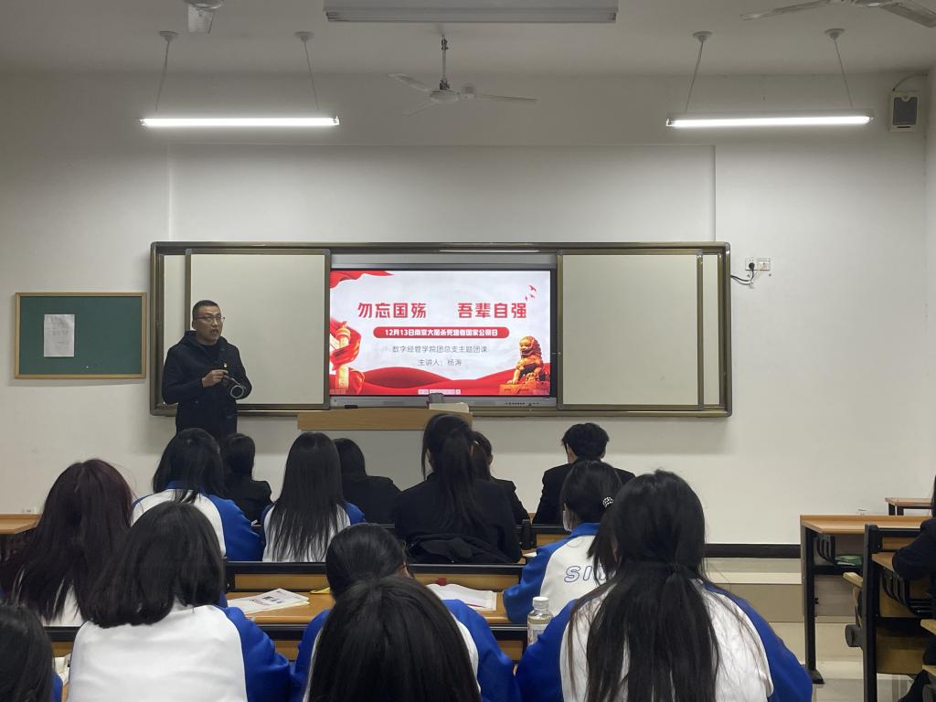 为弘扬爱国主义精神,缅怀南京大屠杀死难同胞和在抗日战争中牺牲的英烈们。2023年12月13日,在第十个南京大屠杀死难者国家公祭日当天,sunbet申搏团总支副书记杨涛在第二教学楼403教室为公司团支部书记,团总支、员工会委员上了一堂生动的团课。